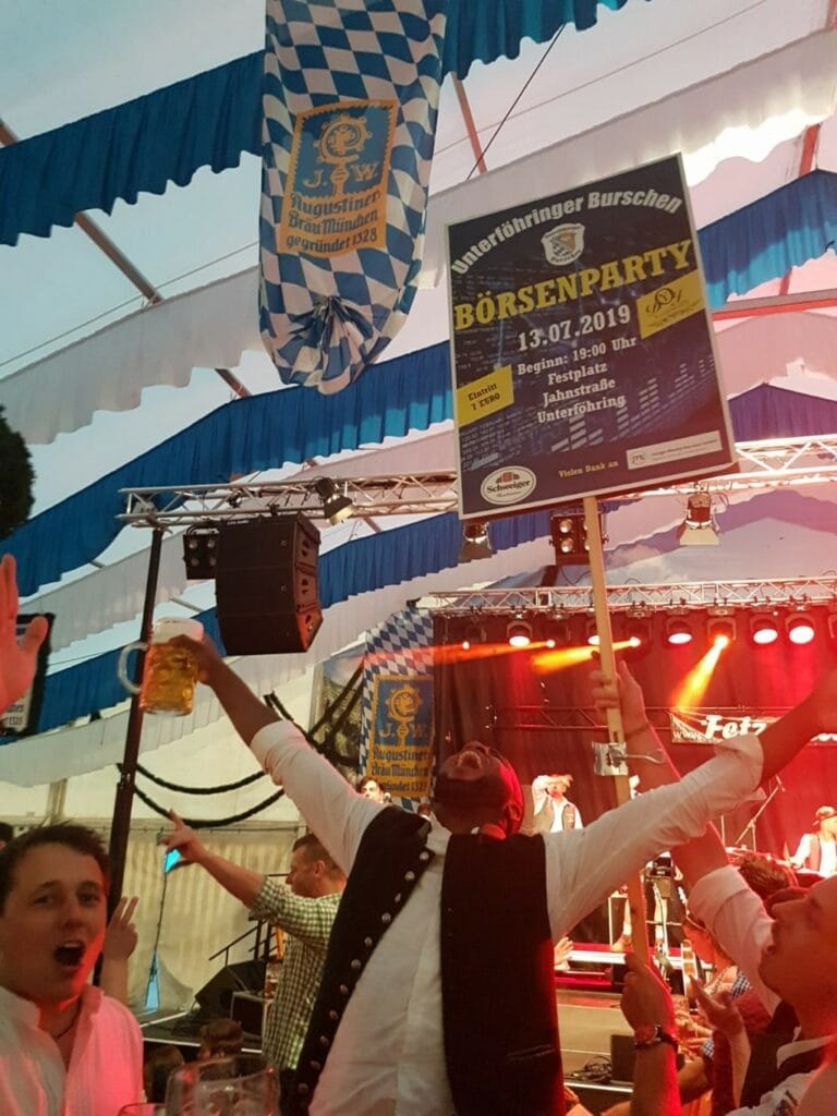 In den darauffolgenden Jahren versuchte sich der Burschenverein durch verschiedene Partyideen ein Alleinstellungsmerkmal zu schaffen, aber auch dies dauerte in den ersten Jahren über eine Ziegelbrennerparty 2015 oder ein Bierfest 2016. Doch die große Idee entwickelte sich gegen Ende des Jahres 2015, als die Börsenparty das erste Mal aufkam. So wurde sie direkt in der darauffolgenden Maibaumzeit veranstaltet und das mit vollen Erfolg.